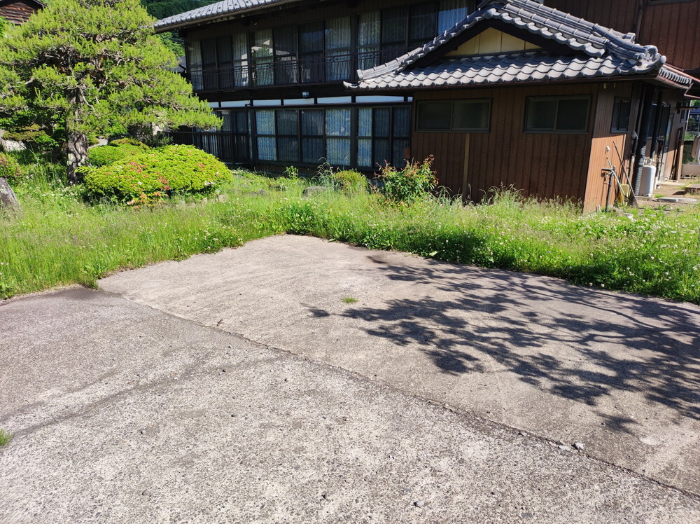 この家の周りと庭の草を刈ります。すでに空き家みたいですが、大きな家です。