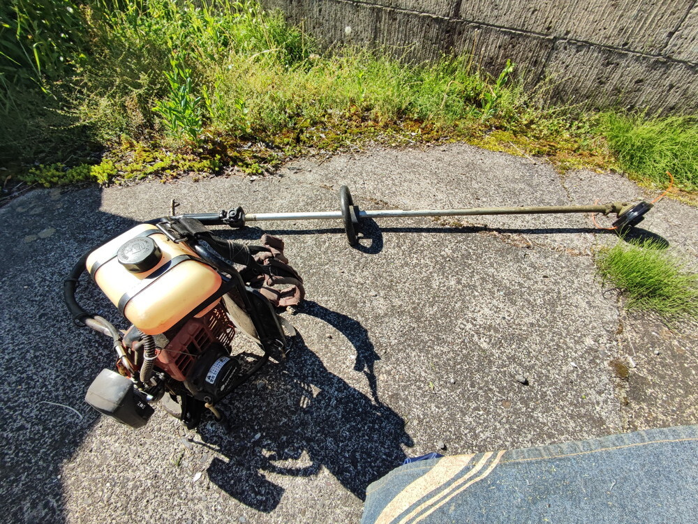 塀の近くなども綺麗に刈るためにナイロンカッターを使うので、パワーのある機械でやる感じですね。他の機会に比べて驚くほど燃料が減りません。気のせいかな・・?