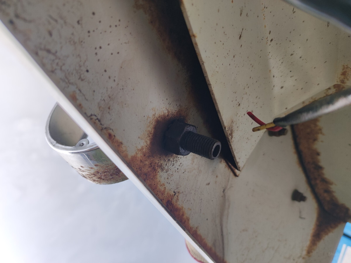 インパクトレンチで強引に回すとちょっとだけ緩んだので、ワイヤーブラシで錆を落として再度締め込み。これでダメならケーブルを追加してアースさせるつもりです。