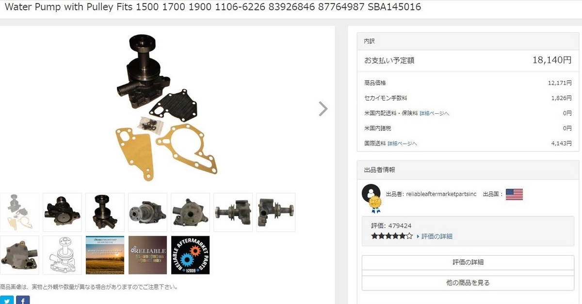 故障が判明したFORD1720トラクタのウォーターポンプですが、アメリカで部品を発見したので注文しました。