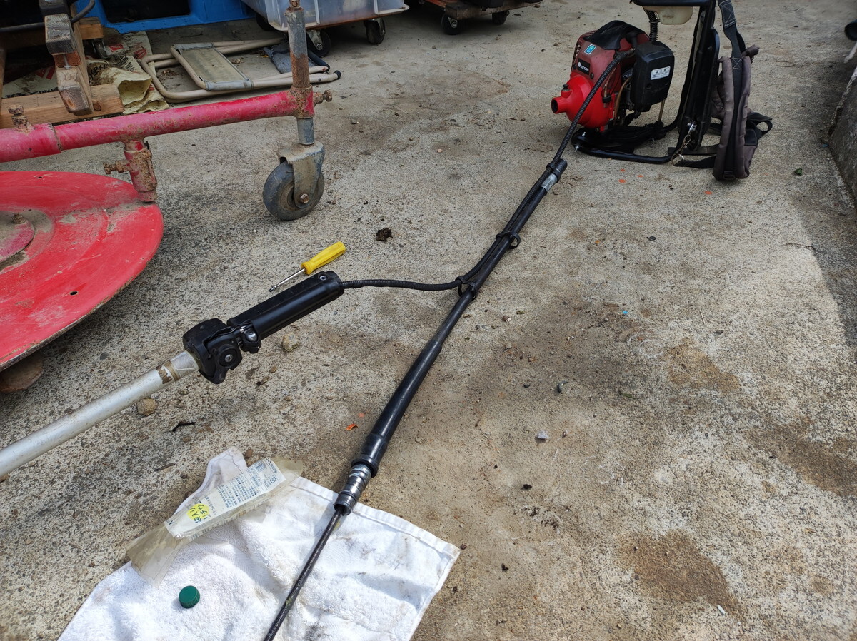 今シーズン初使用の背負い式草刈り機、最初ということで各所のグリスアップをします。