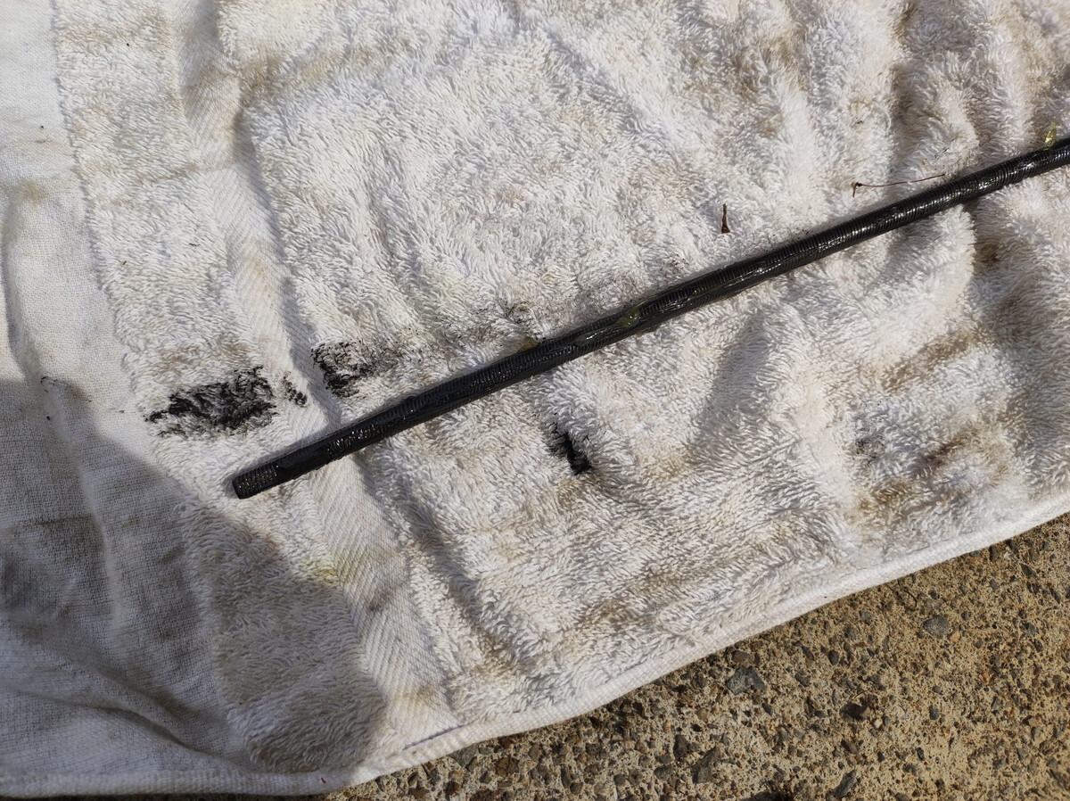 写真ではフレキシブルシャフトを分離して中のシャフトを取り出したところ。