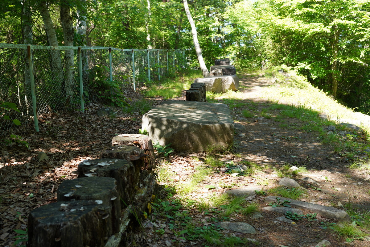途中にはこんな感じで石を切り出した立派なベンチがありました。