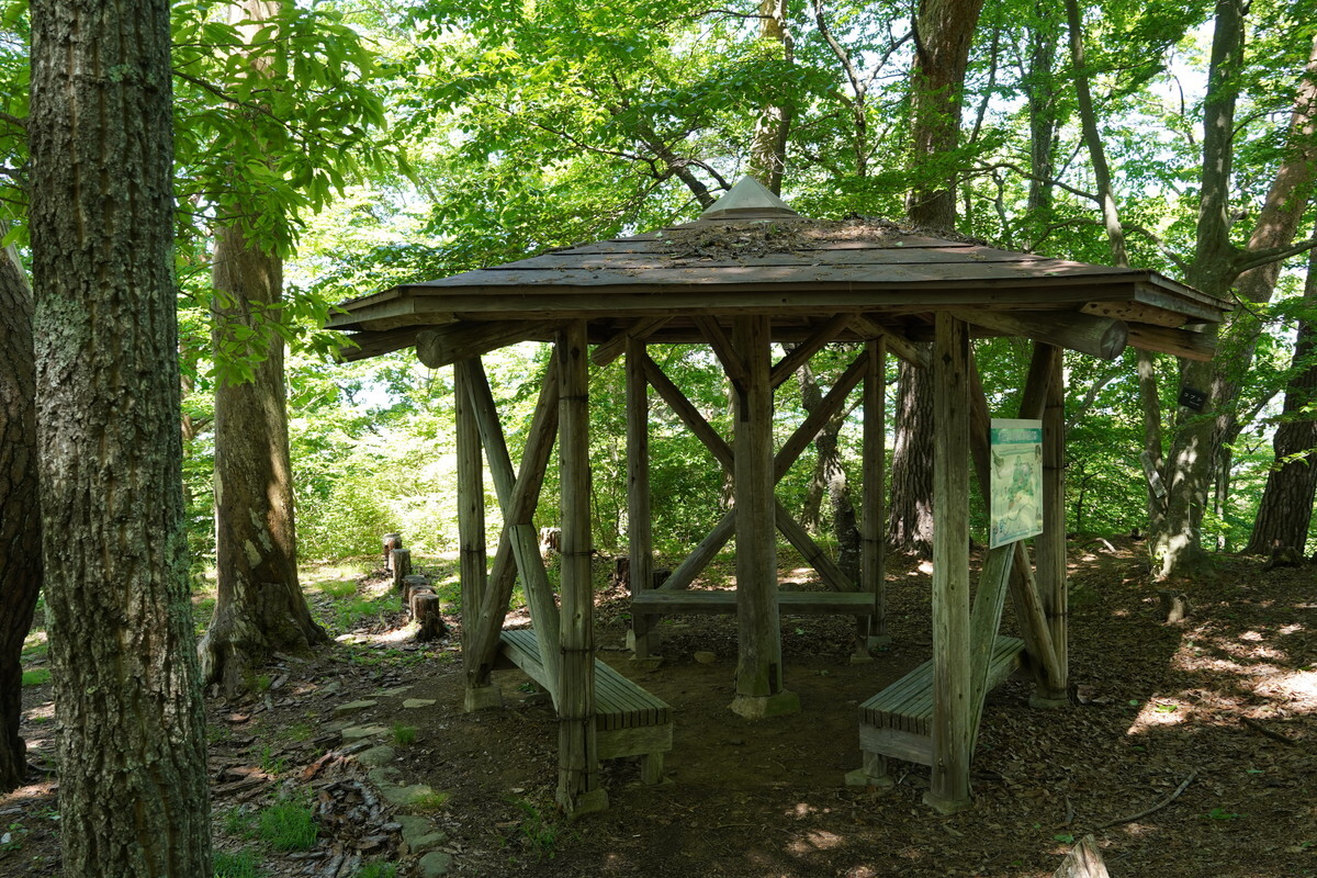 全体の半分くらい登ったところで休憩できる「あずま屋」がありました。