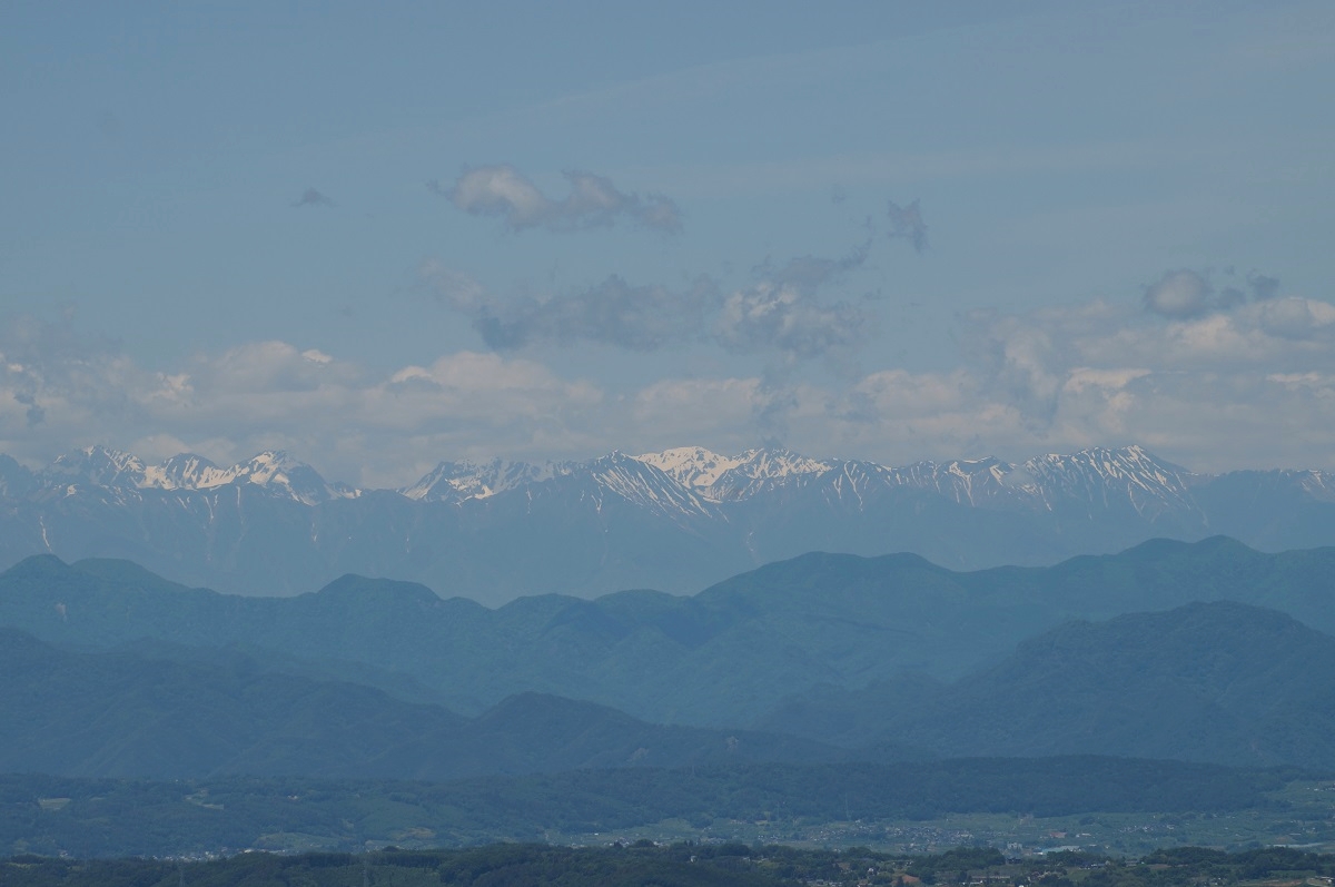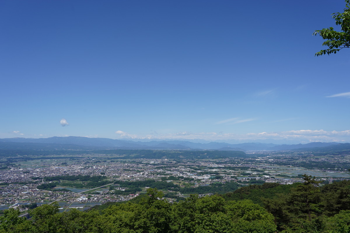 遠くに見える山は左から八ヶ岳、蓼科山など。眼下に広がるのは佐久平です。
