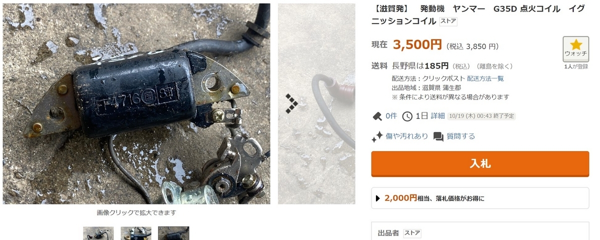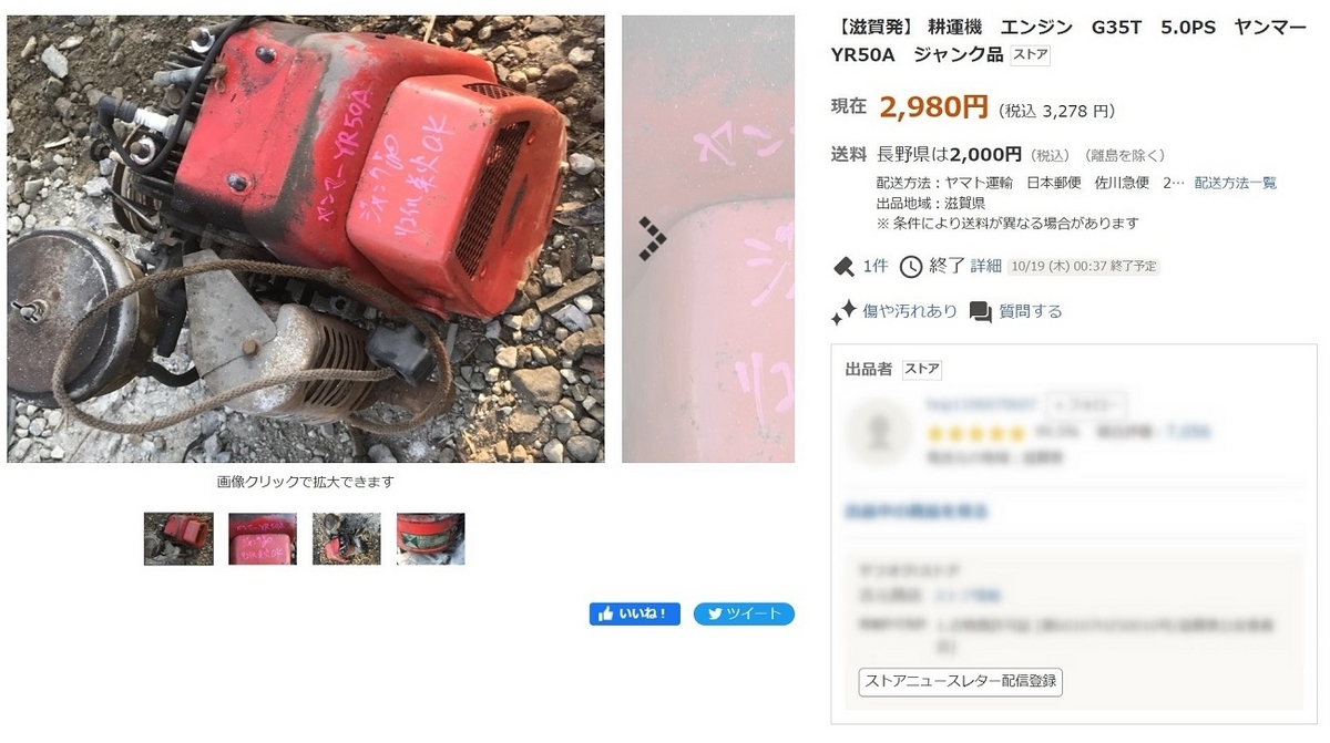さらに聞くと、出品していたものとは別個体だけど同じ型番のエンジンがあるとのことで、それでもいいから、点火するかの確認をしてから再度連絡をもらうように伝えました。