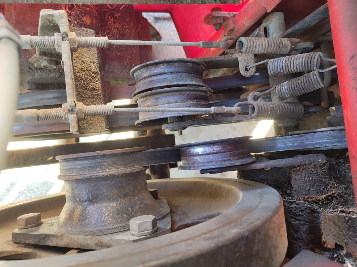 写真の左側、ハーベスタなのに副変速が付いてます。これの低速側に入れても確かに反応がありません。なんだこれ?