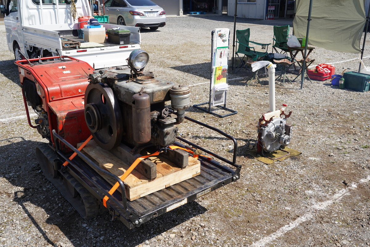 端っこに陣取らせてもらい、直ったばかりのヤンマーT95と散布機を並べました。