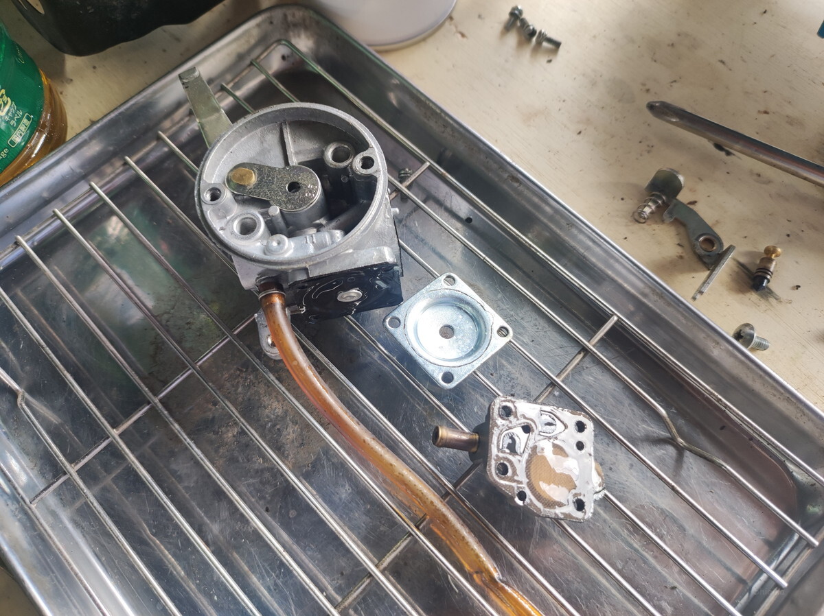 鉄くず屋から買ってきた草刈り機を直して使いたい!ってことで去年の12月に仕入れてきた新ダイワ RM350を修理します。