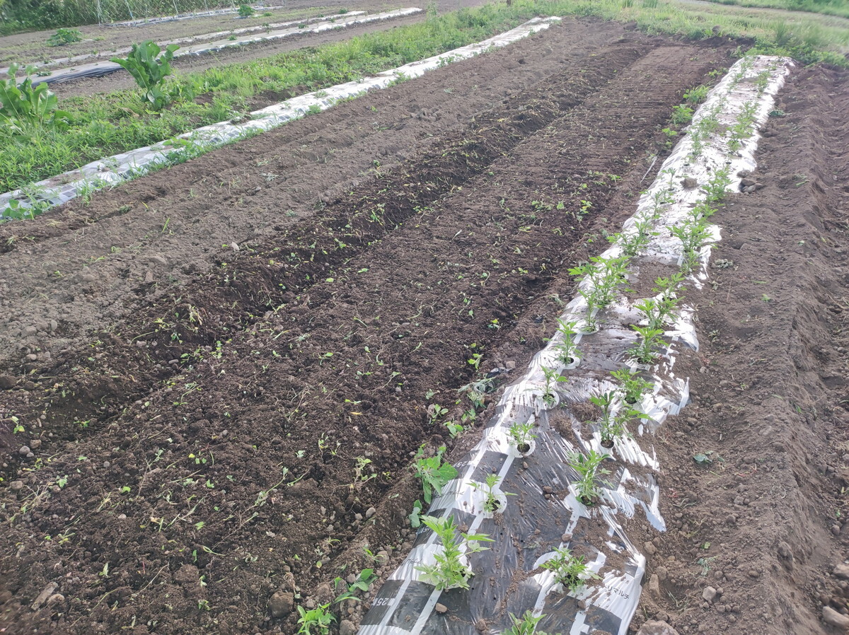 もう夕方なので1列だけ耕して簡単に畝立て。