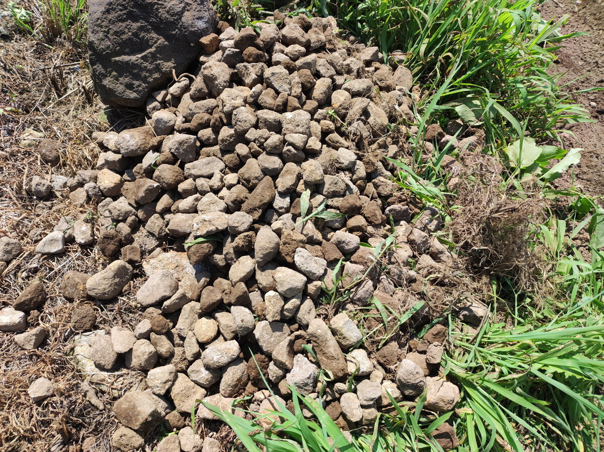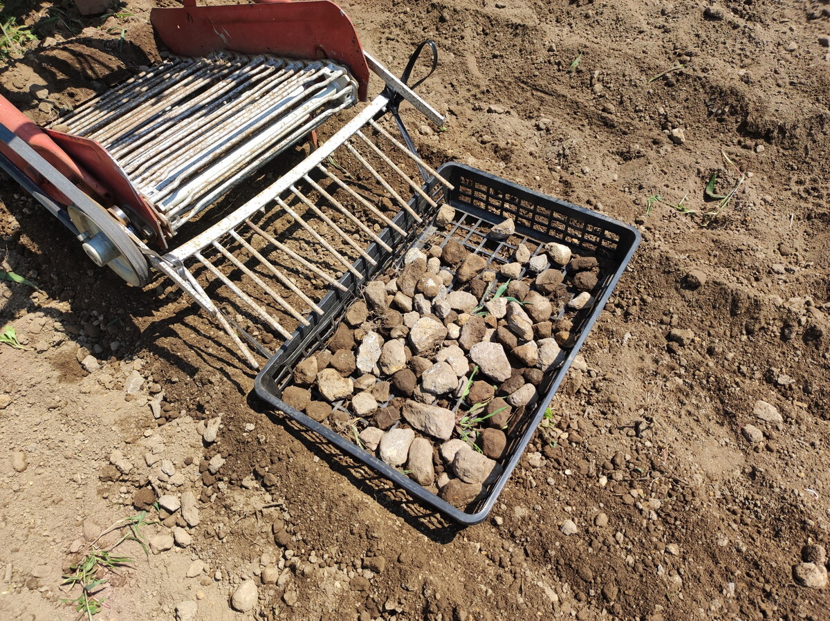 本来は芋掘りなどに使うのですが、代わりに石を掘り出してみます。