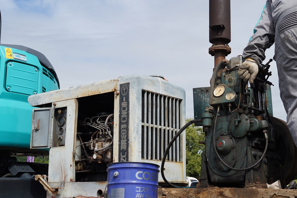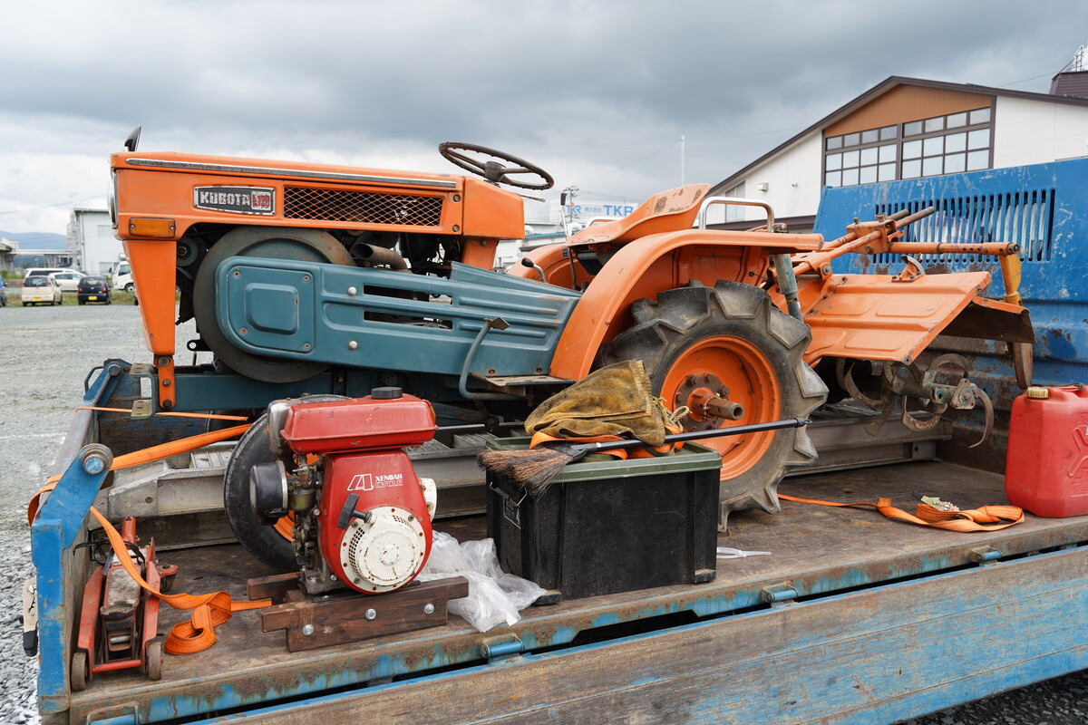 余談ですが今回はなるべく荷物が少なくなるようにしてきました。発動機は空冷なので冷却水が不要、燃料は小さな容器に入れて箱に入るようにしてます。