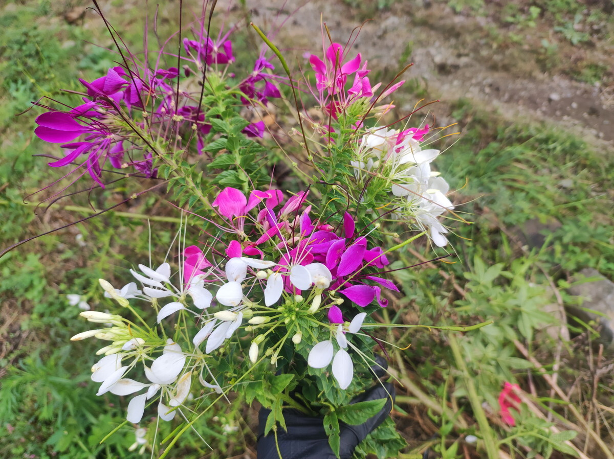畑の彩りとなっているクレオメ(別名フウチョウソウ)
