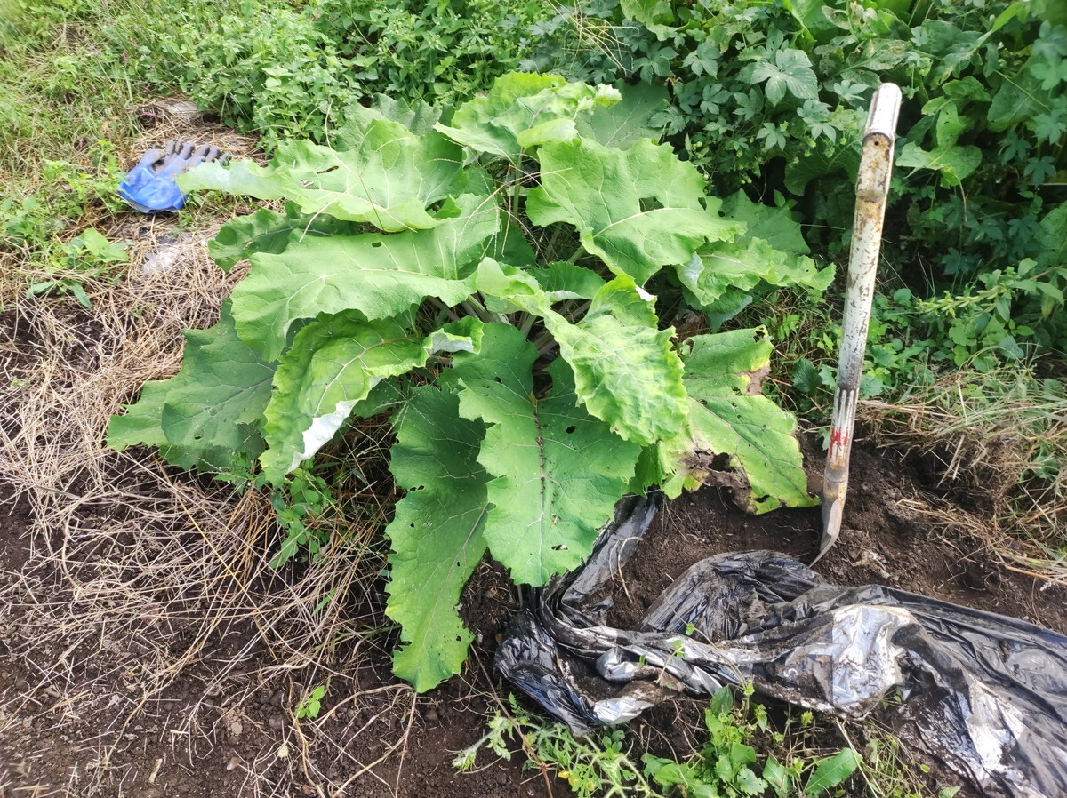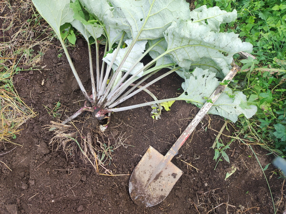 葉っぱが大きいだけ、食用には程遠い・・・こんなの「観賞用のゴボウ」じゃん(笑)