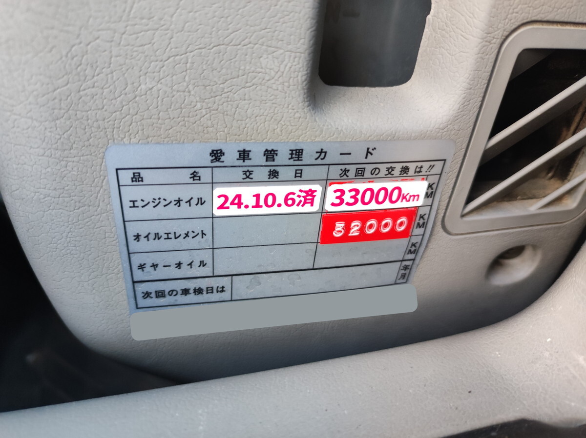 現在の走行距離が約28000kmと年式を考えれば奇跡的な低走行車ですが、古いので5000km毎の交換にします。