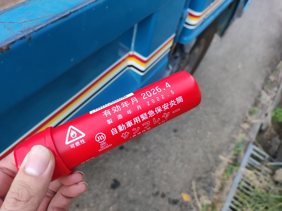 遠出することもあり、もしもに備えて発煙筒を新調しました