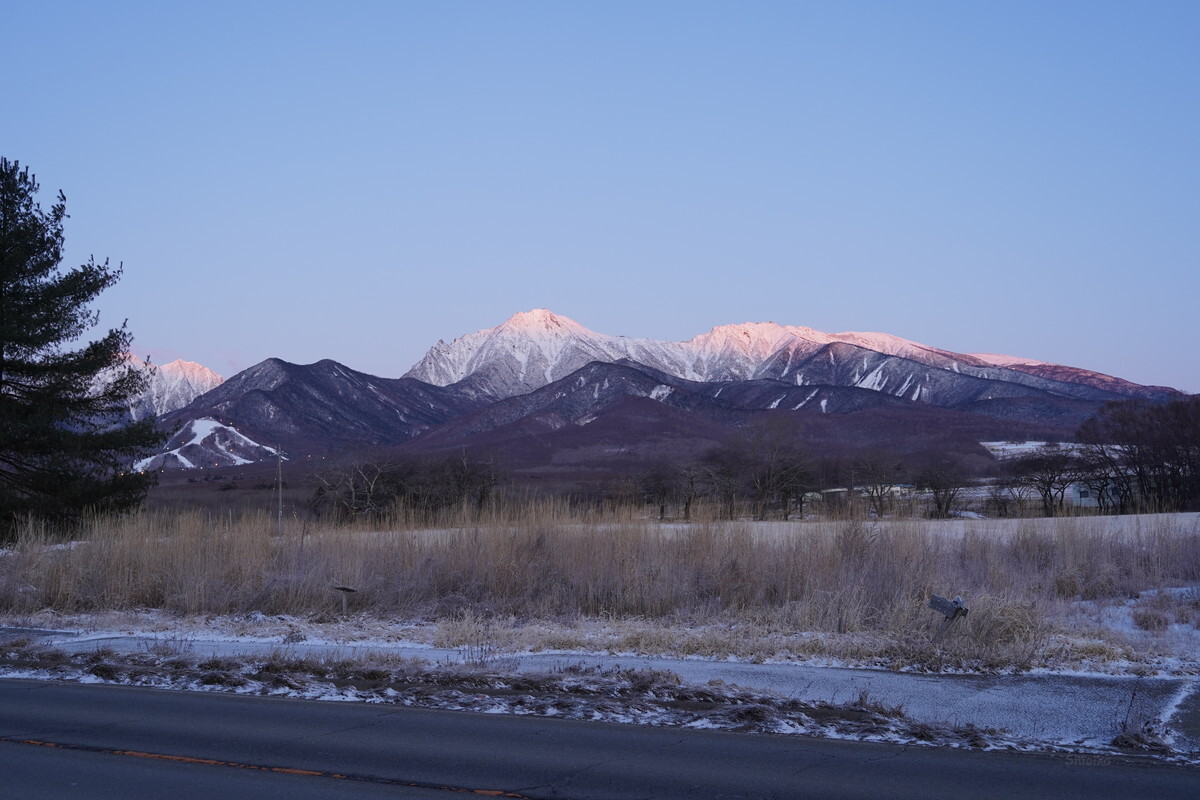 朝日に照らされる八ヶ岳。あまりに美しいので撮影