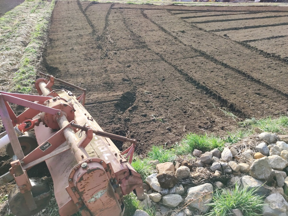 親父がたい肥をまいてくれたので、肥料を入れて耕していきます