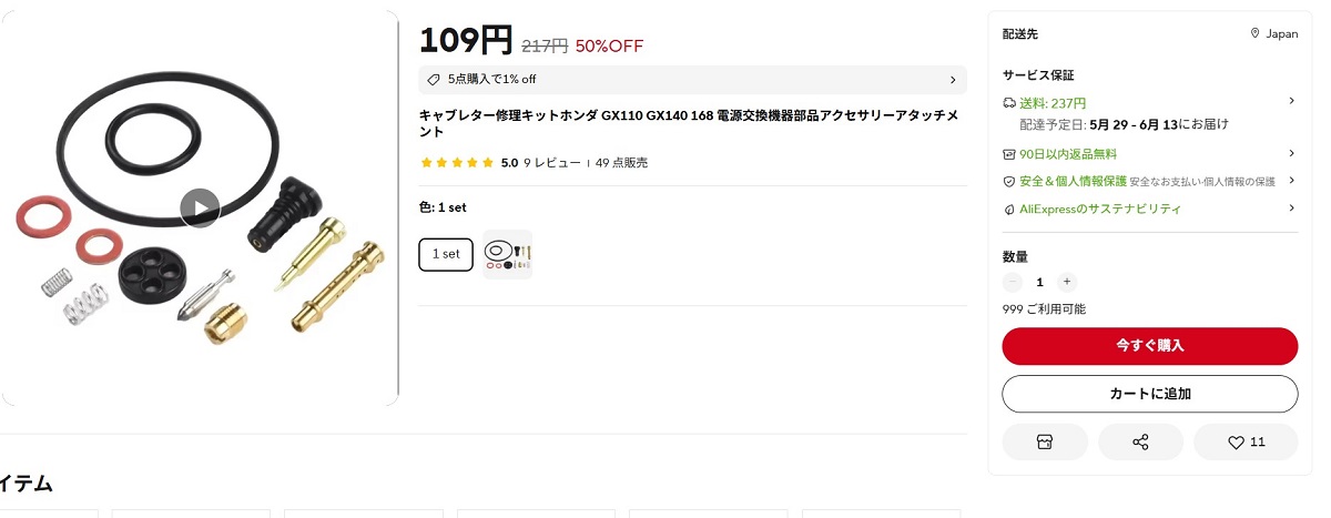ゴムパッチン3種とドレンパッキン、ニードルを交換しました。