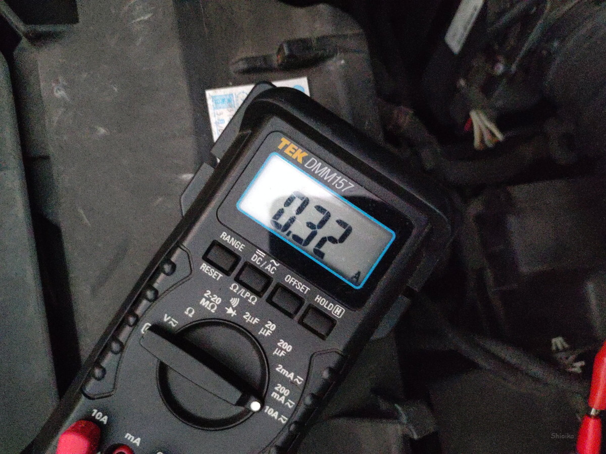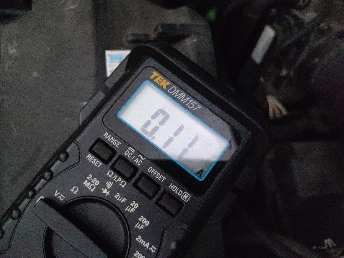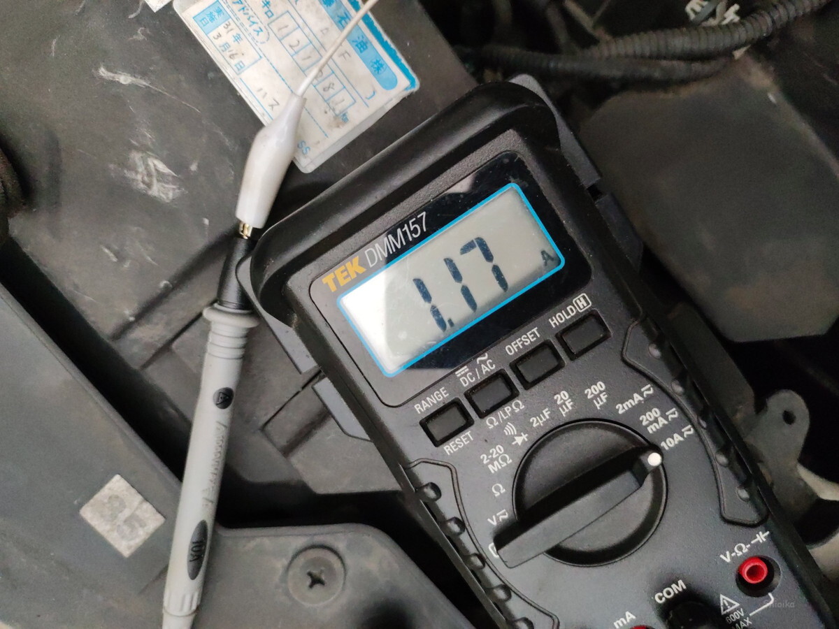 帰宅して見るとブレーキランプすら点かなくなっており、テスターで測ると10Vくらい。完全に放電してます・・