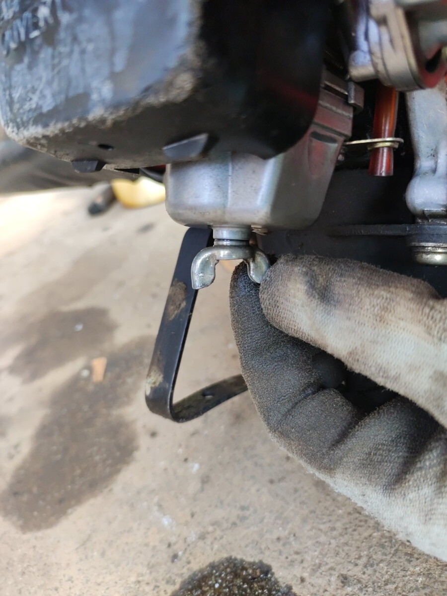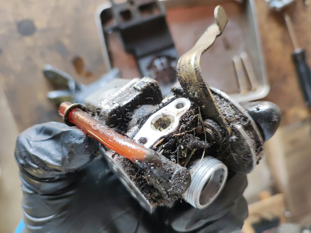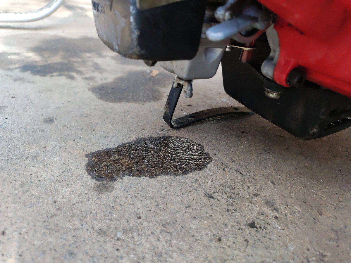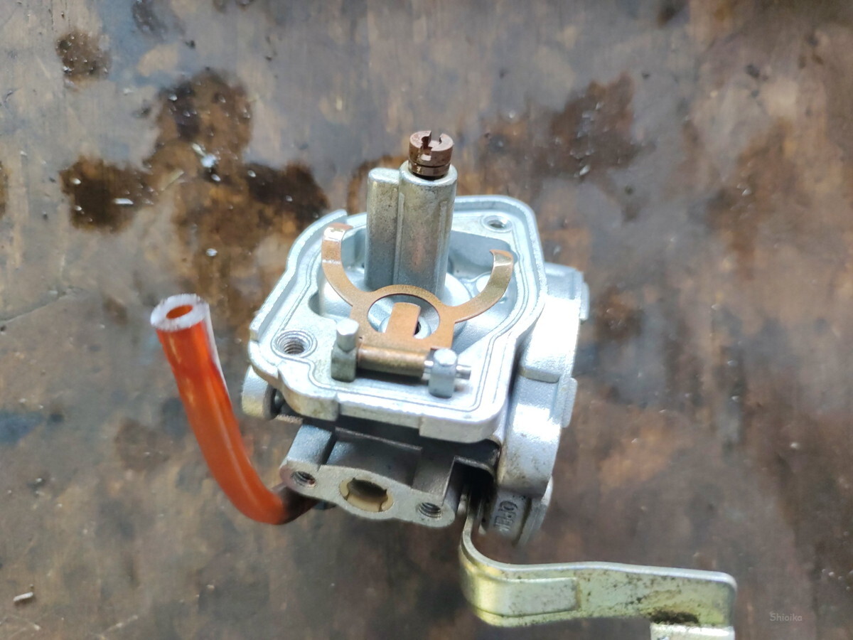 キャブレターからのオーバーフローと判断、掃除します。