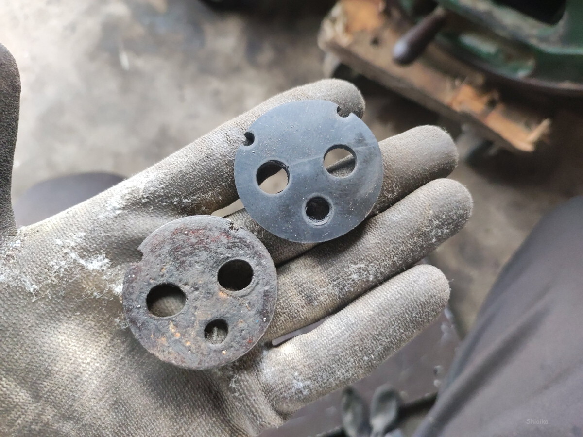 発動機の修理に戻って、燃料コックのパッキン交換