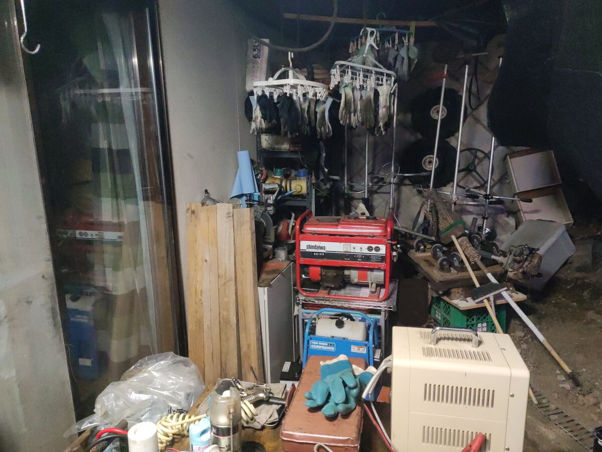 すっかり暗くなった夕方、なぜかこの時間になってやる気が出てきてしまい、作業場所の片づけをすることに。
