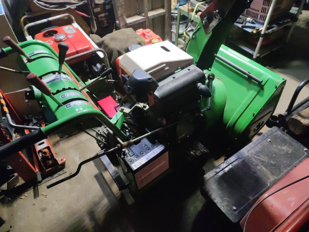 ヤンマーTシリーズと書いてあったけど、写真の角度の問題なのか、見たことのない機種のように思える。右側のVプーリーはどうなっているのだろう?